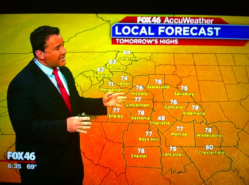 How can every area around Charlotte be almost 30 degrees warmer and Charlotte still be in the 40's?
