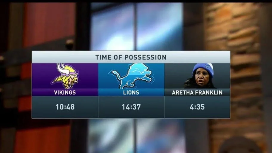 But, when she sung it, she did it Aretha's way and put a lot of soul into the Star Spangle Banner. In fact, she put so much soul into the song it lasted over 4 minutes. Which, just had to be some sort of NFL game day record.