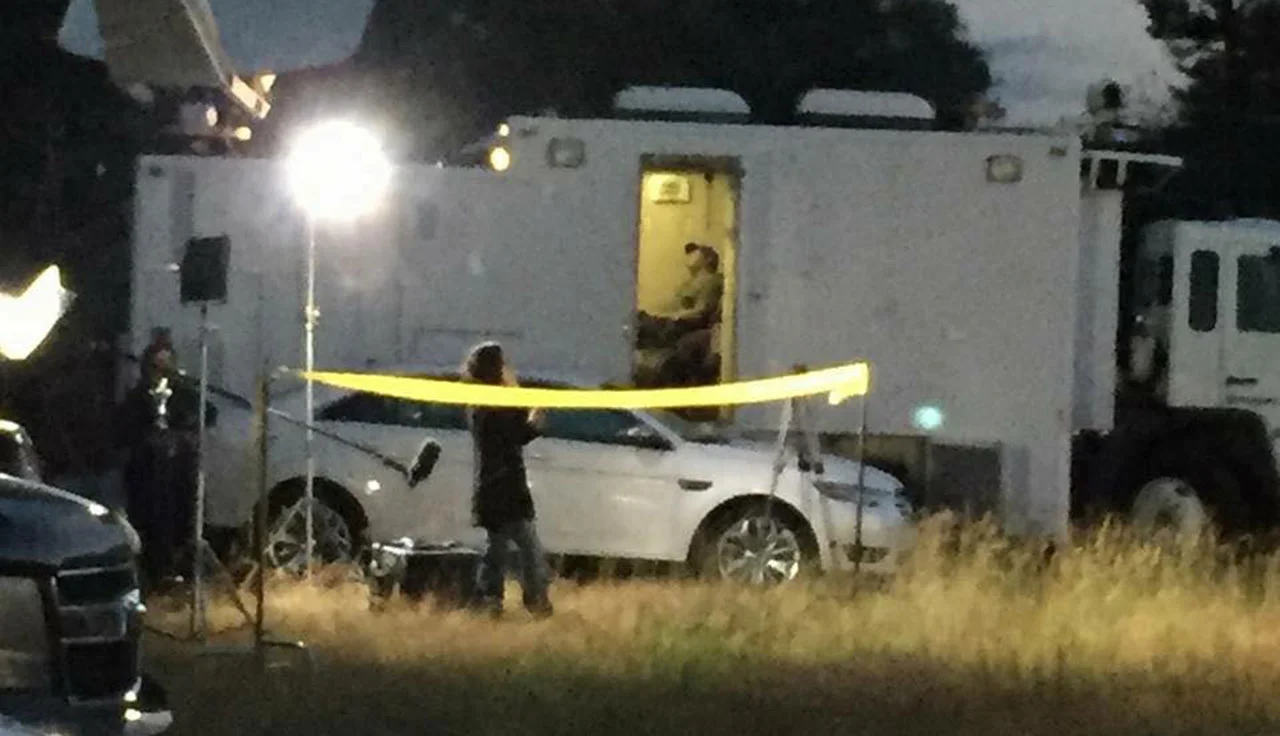 It appears that Davis was standing at an active crime scene, but the crime scene tape was just a TV prop to make it look like she was in front of the real crime scene. .