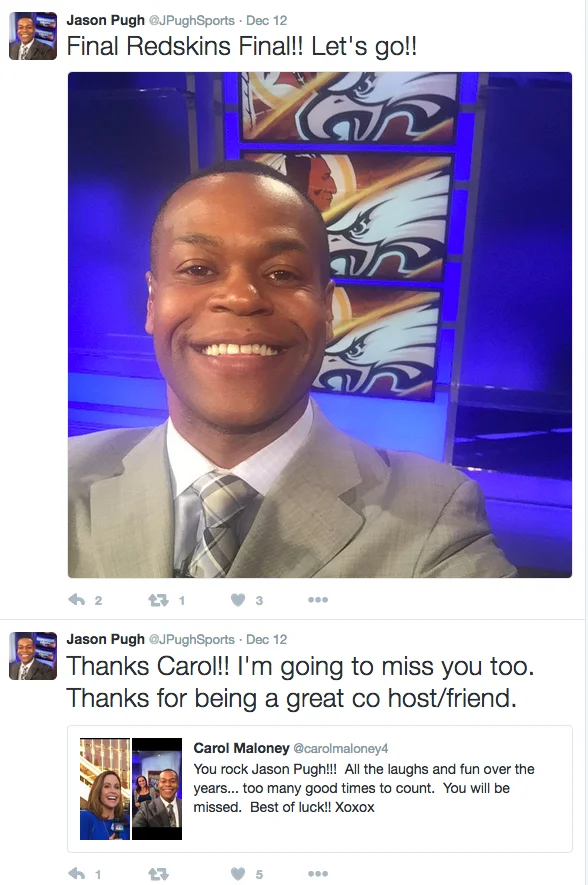 Viewers watching last night's broadcast say it appeared Pugh was saying, "Goodbye". The only sure thing is a reference on his Twitter feed to a 'Final Redskins Final' and well-wishes by a viewer.