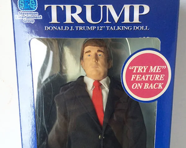 One other thing the Trump doll says, "lob me another softball question, these are easy."