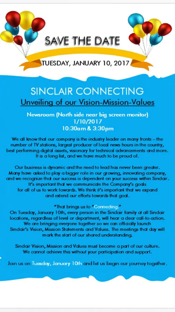 But, for those that survive the hatchet, there will be a big meeting meeting called "Sinclair Connecting."
