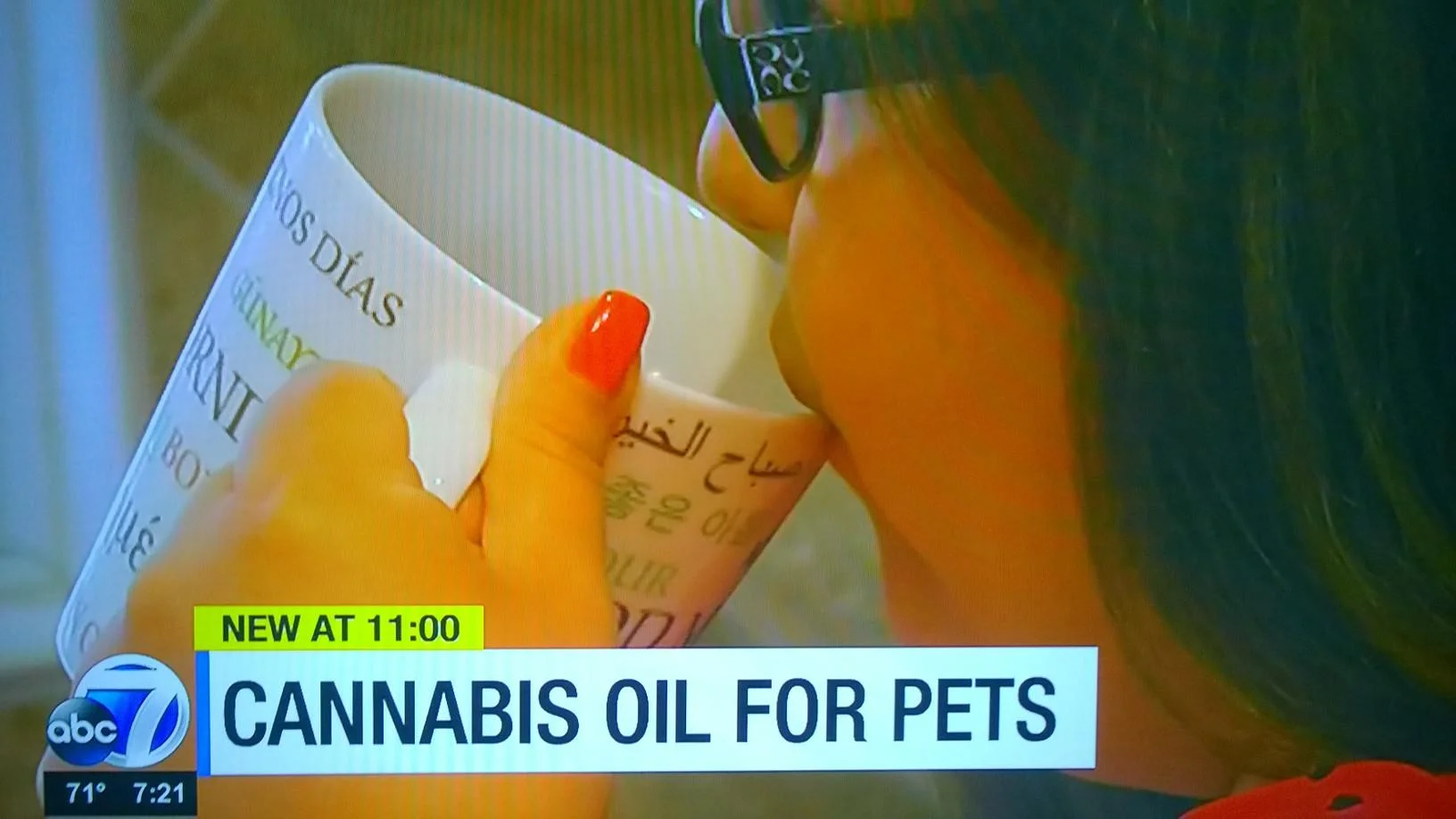 So, is this woman someone's pet and is she really drinking cannabis oil, or is it just coffee?