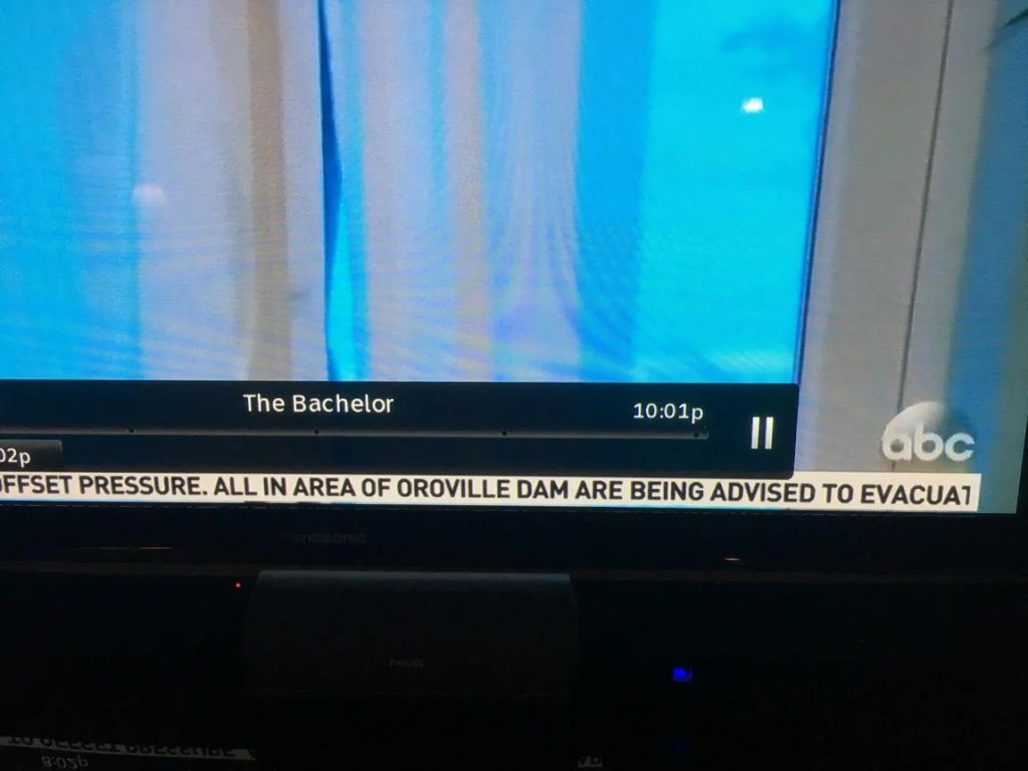 ABC10 Sacramento mistakenly scrolled information about evacuations for areas below Lake Oroville Dam due to an imminent failure of the emergency spillway.