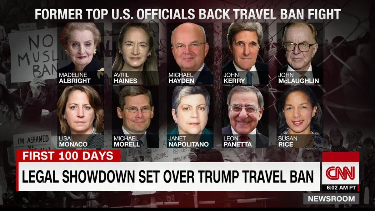 Yesterday morning around 9AM, CNN ran a graphic that showed former and present officials who back Trump's travel ban fight.