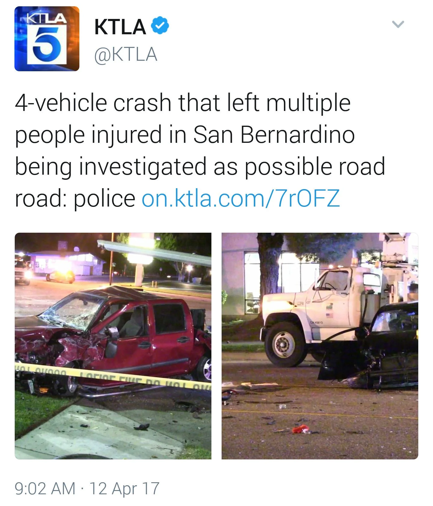 Here's the latest, from KTLA. We've never heard of "Road Road'.