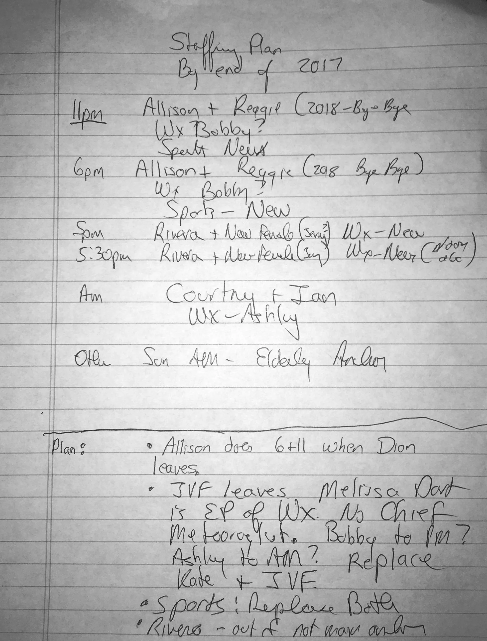 FTVLive obtained this WTSP manager's notes from last year, about what the station has planned for by the end of the this year.