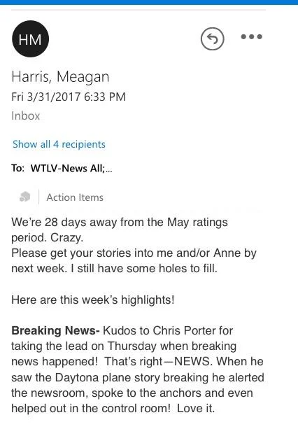 Also, remember the May book is coming and the station's News Director needs your story ideas now.