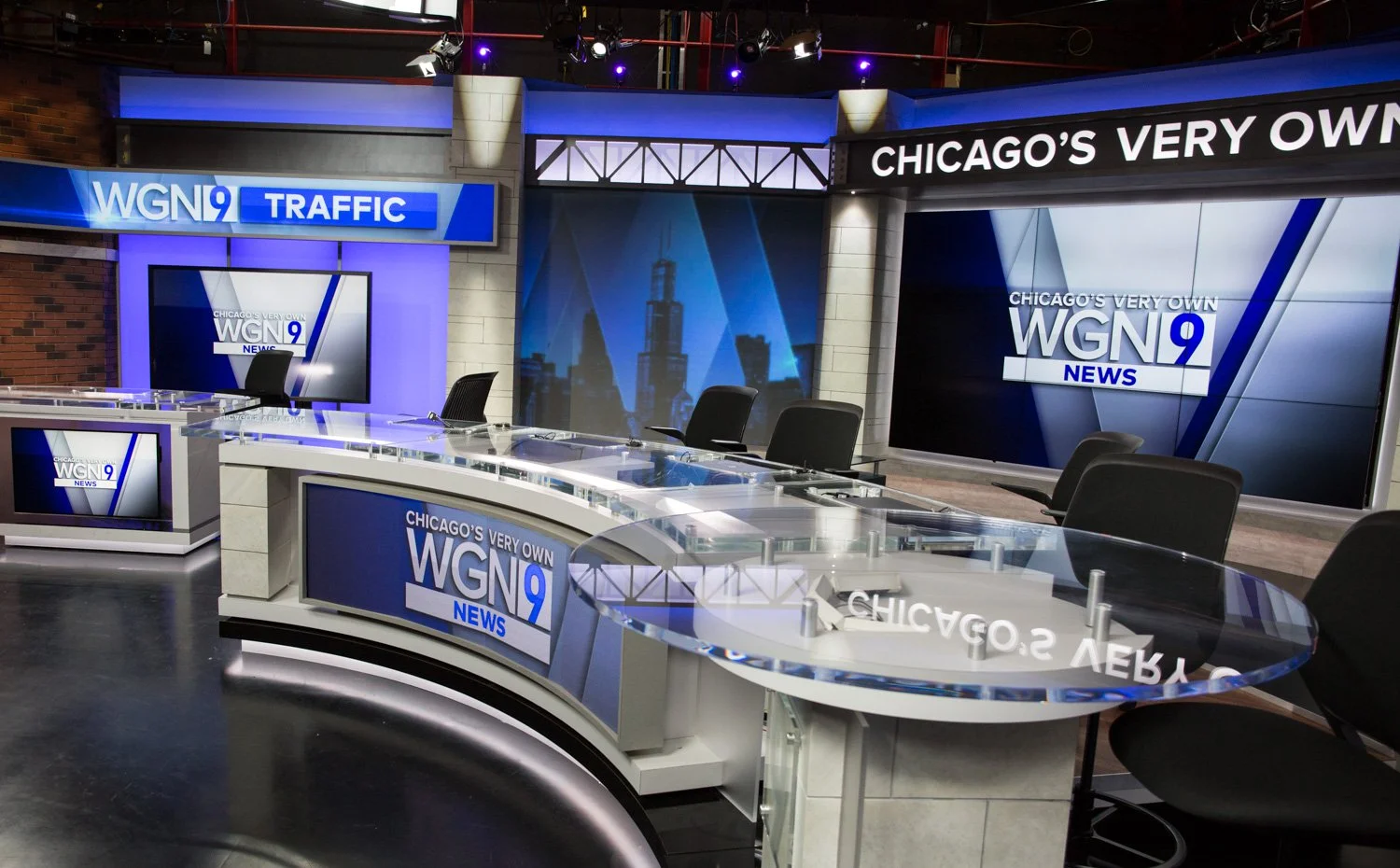 Chicago has seen two sets within a month. WFLD Fox 32, the Firm's Chicago station rolled out its new Clickspring Design digs at the end of April. Yesterday, Tribune's WGN Channel 9 debuted its new set (pictured right), just days after news broke of Sinclair-Tribune merger.