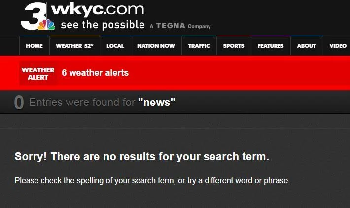 While doing a search for the word "News" on Tegna owned WKY in Cleveland, here were the results: