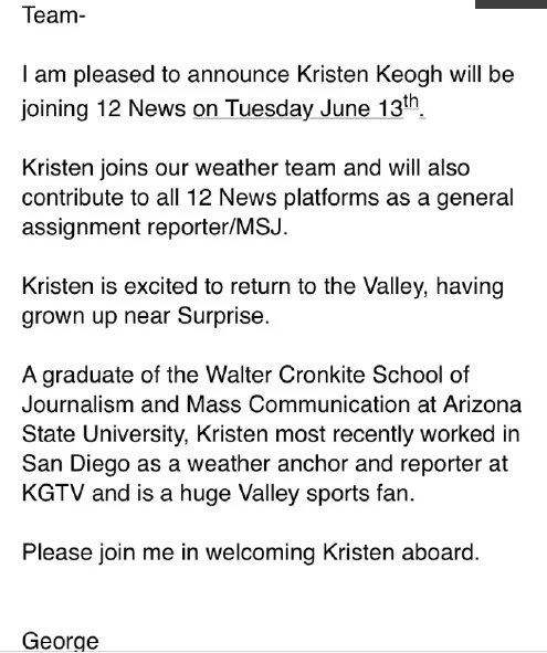 Keogh does not have a lot of experience doing weather, but she does look better than Matt Pace in a bikini and likely will make less money, so this is a win-win for Tegna.