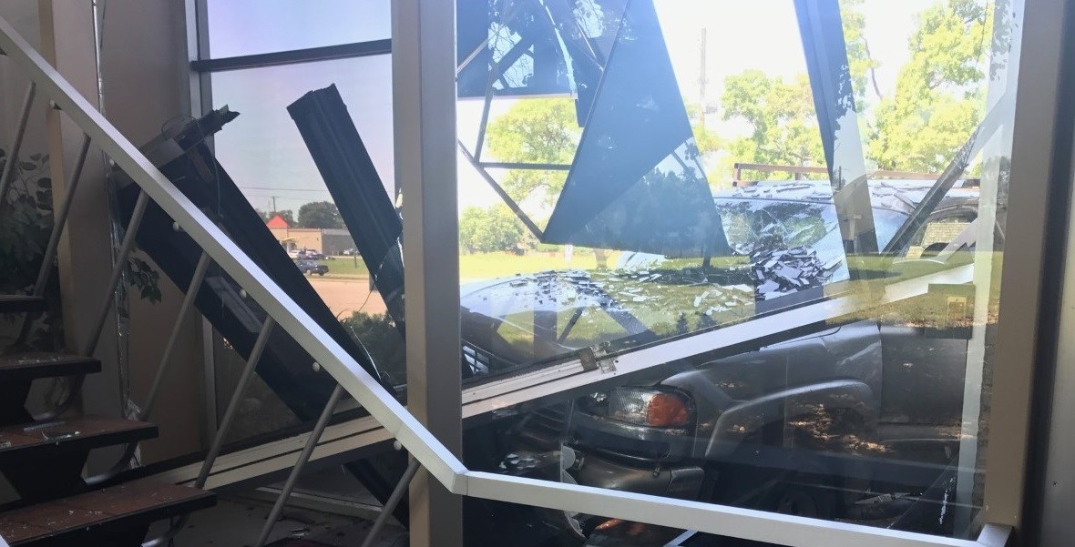 Police say a man driving the truck had a medical emergency and drove right into KAKE's front doors of the building causing several glass partitions and steel frames to break.