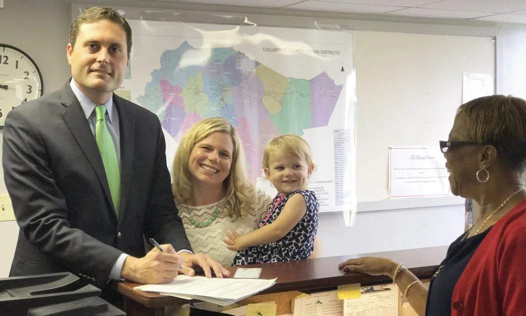 Former WECT (Wilmington) Reporter Justin Smith filed the paperwork to run for a District 1 seat on the Whiteville City Council at the Columbus County Board of Elections Monday morning.