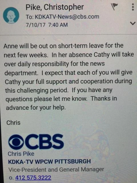 KDKA GM Chris Pike sent this internal memo to the staff: