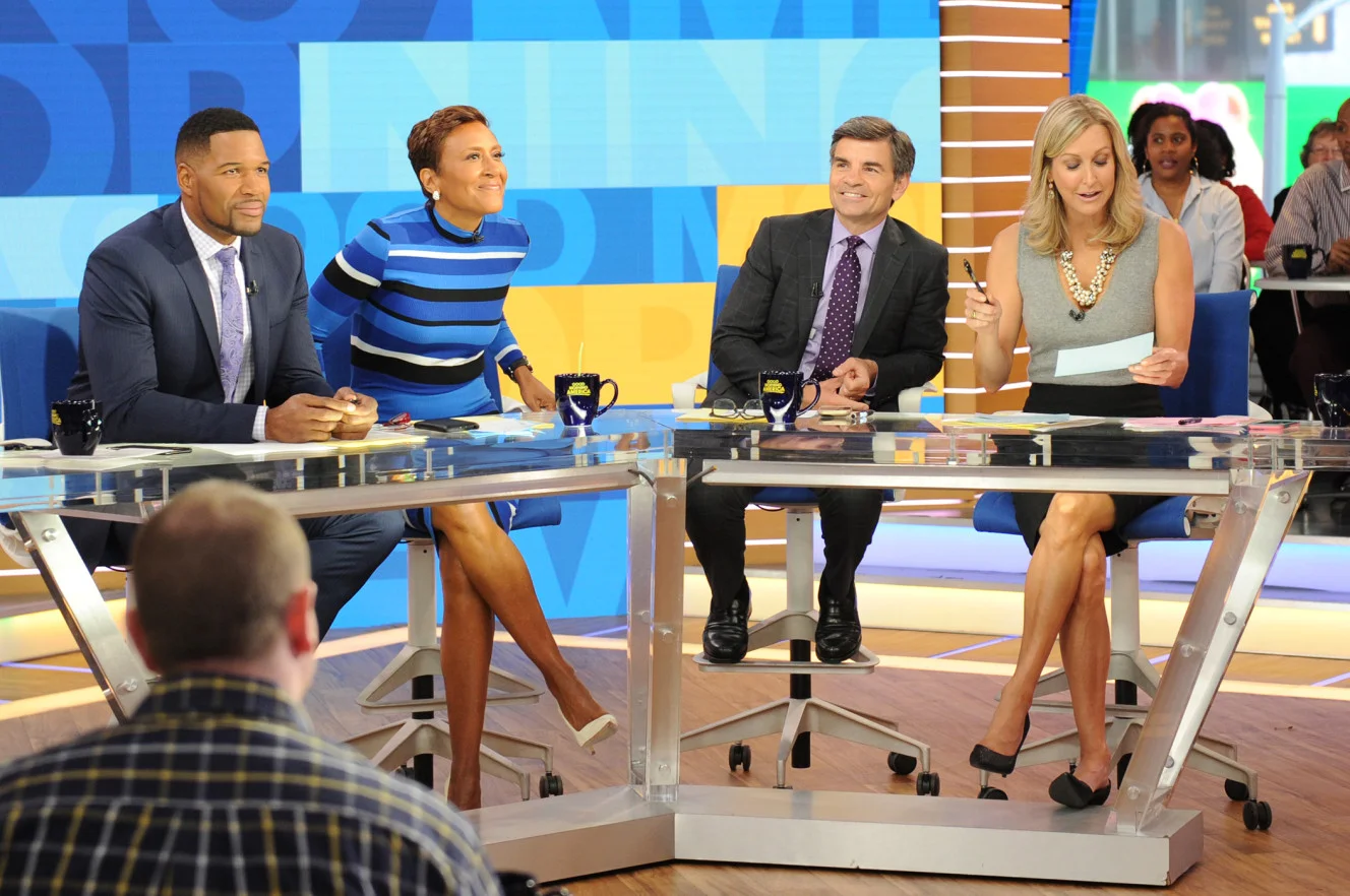 While the other Good Morning America Anchors legs make it all the way to the floor, Stephanopoulos comes up about a foot short.