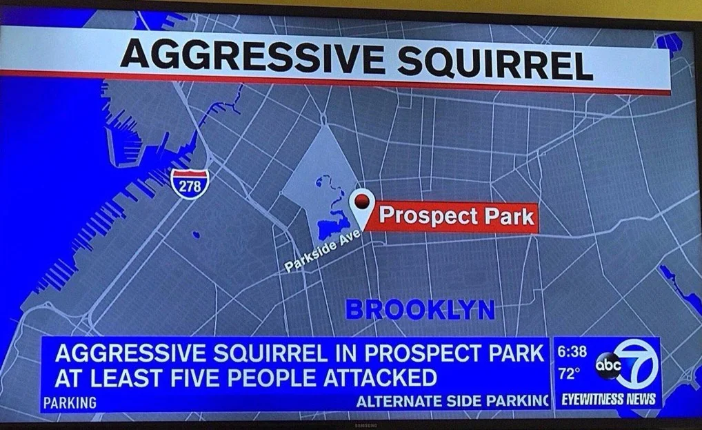 If you were watching WABC in New York, the big story is there is an aggressive squirrel is on the loose.