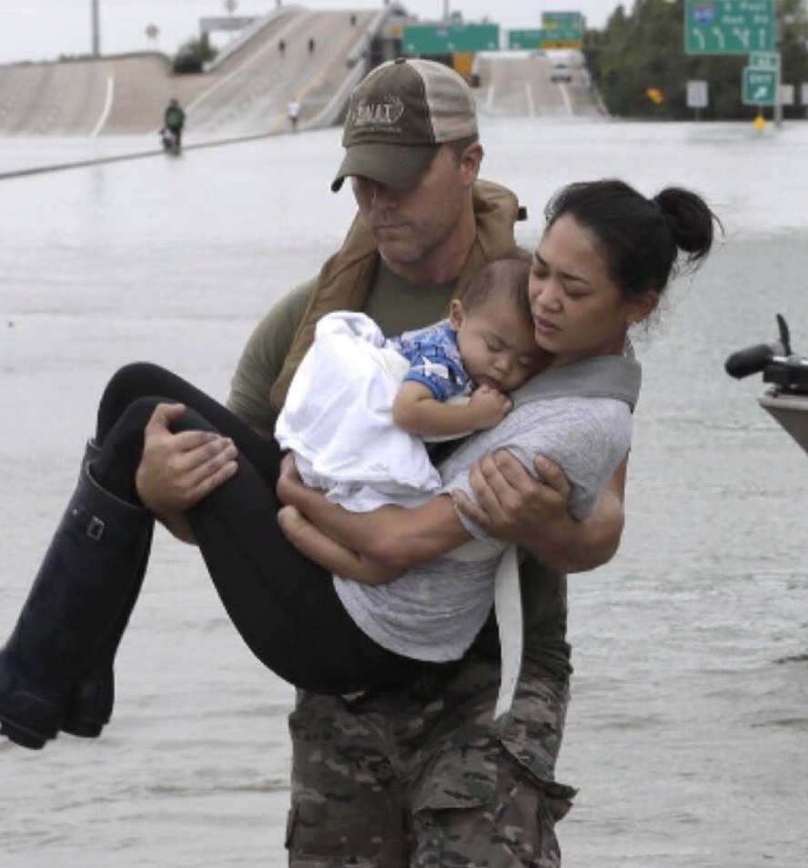 Man rescues a family from flooding in Houston, including young children and a puppy. "See you later, house!" https://t.co/wXHI348RmE pic.twitter.com/pzVzxP87oi