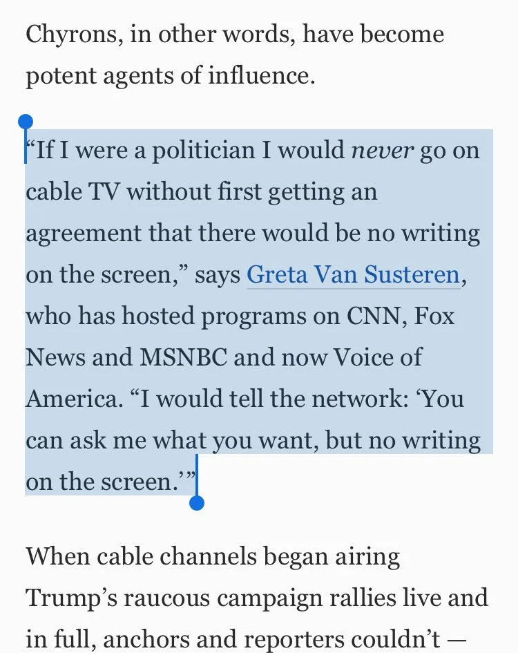 /Former CNN, Fox News and MSNBC host Greta Van Susteren says that if she were to appear on a cable news station as a guest, she would lay down some group rules.