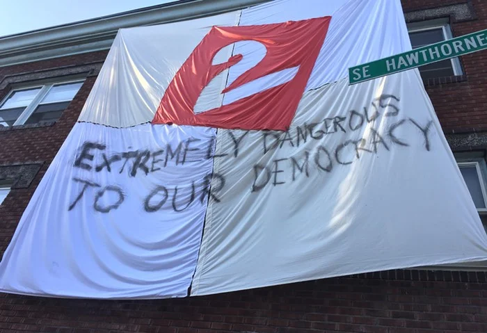 Someone in one Portland neighborhood used a bunch of bed sheets to express their opinion about the Sinclair owned station.