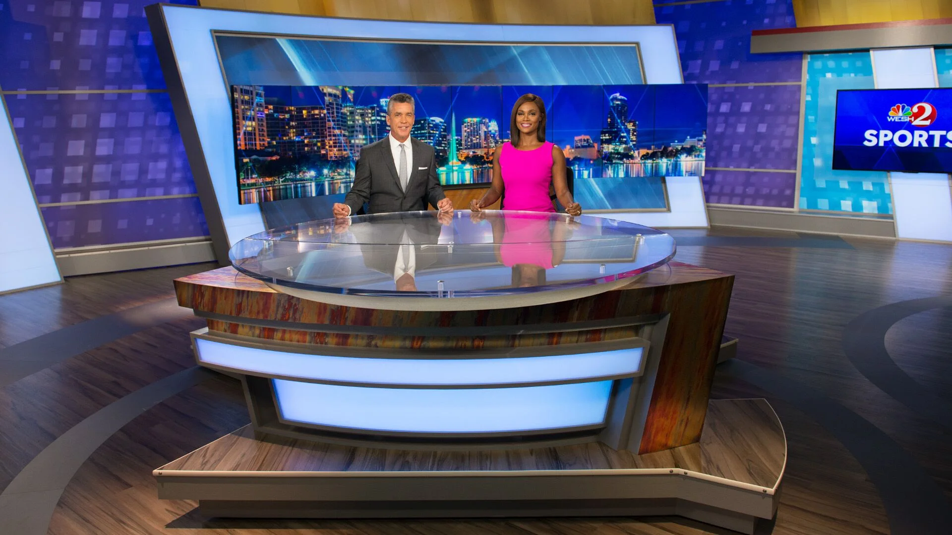 The WESH set is big on technology, featuring 4 50-inch monitors in the breaking weather area and 2 80-inch monitors used for breaking news and to add to the storytelling environment.