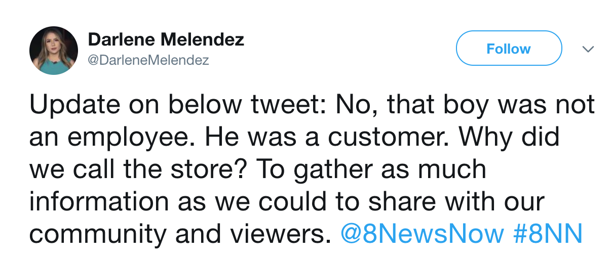 /Yesterday, FTVLive told you that KLAS Reporter Darlene Melendez tweeted about how she called a store while an active shooter was inside.