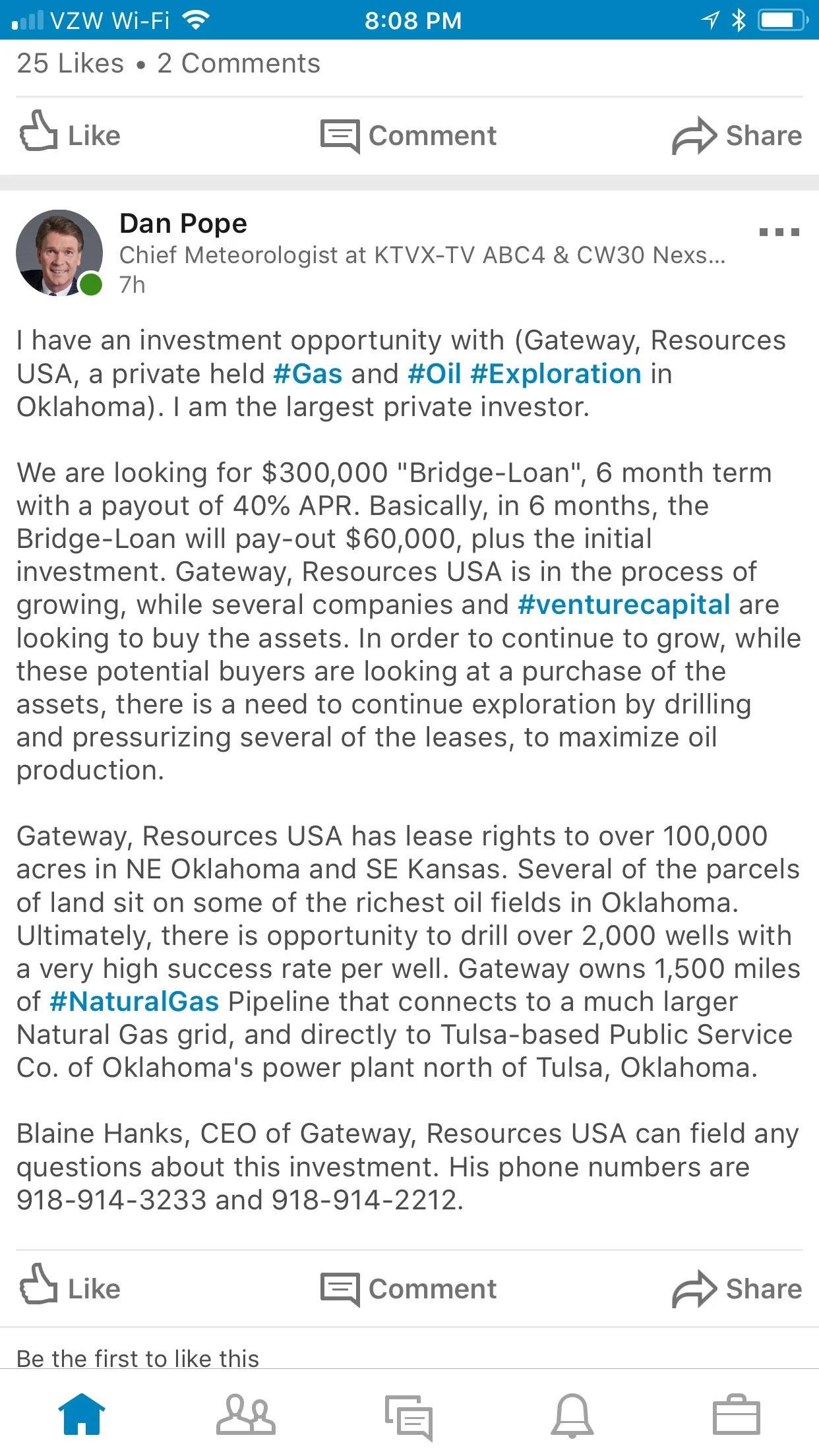 So, I'm not sure that the company would appreciate that he is shilling investment opportunities on his social media.