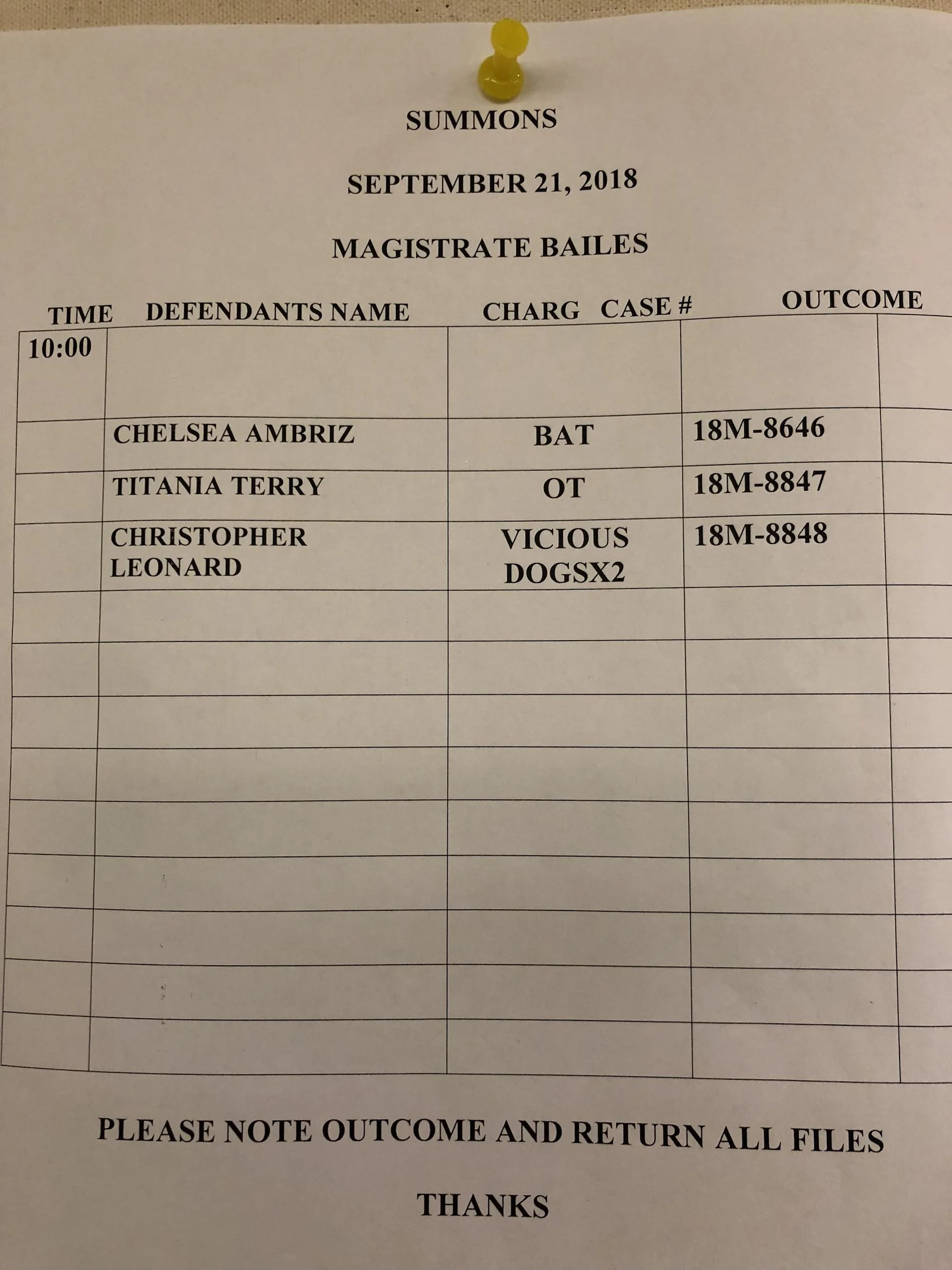 FTVLive spies snapped a a picture of the 10AM docket and former WSAZ Weather Anchor Chelsea Ambriz’s name is at the top of the list.