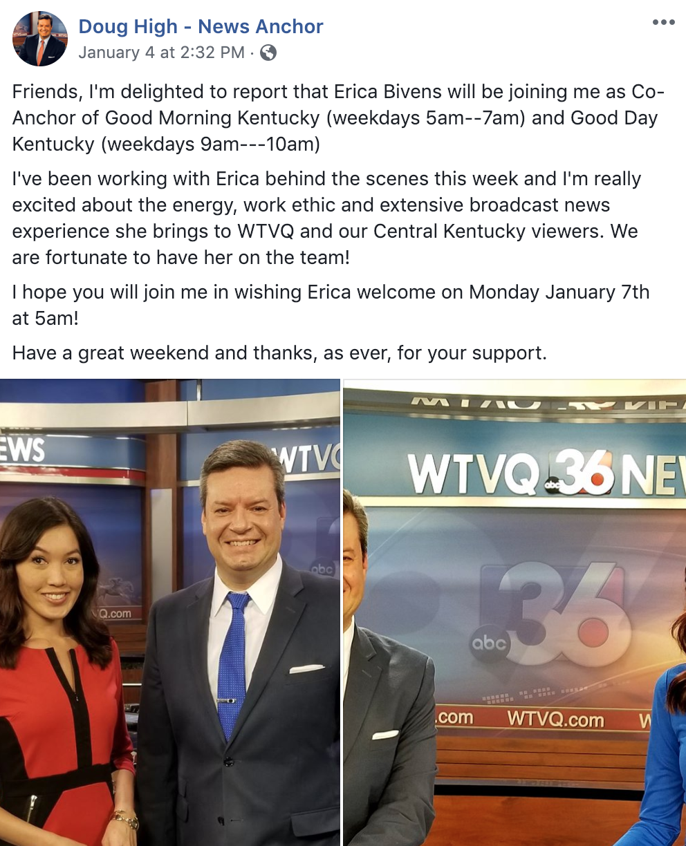 We told you that Bivens has landed the Morning Anchor job at WTVQ in Lexington.