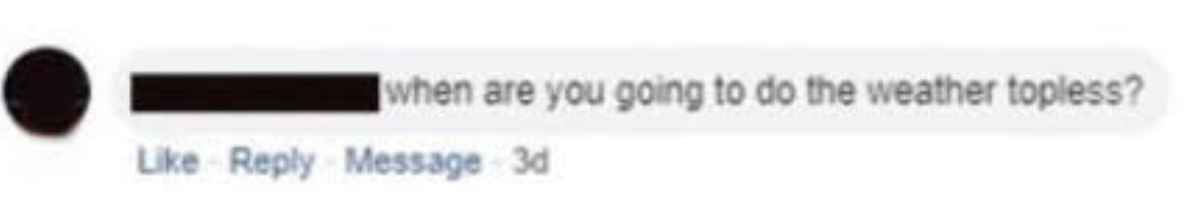 So, some idiot thought it was funny to post on KTUL Meteorologist Caroline Brown’s timeline asking her when she was going to do the weather topless: