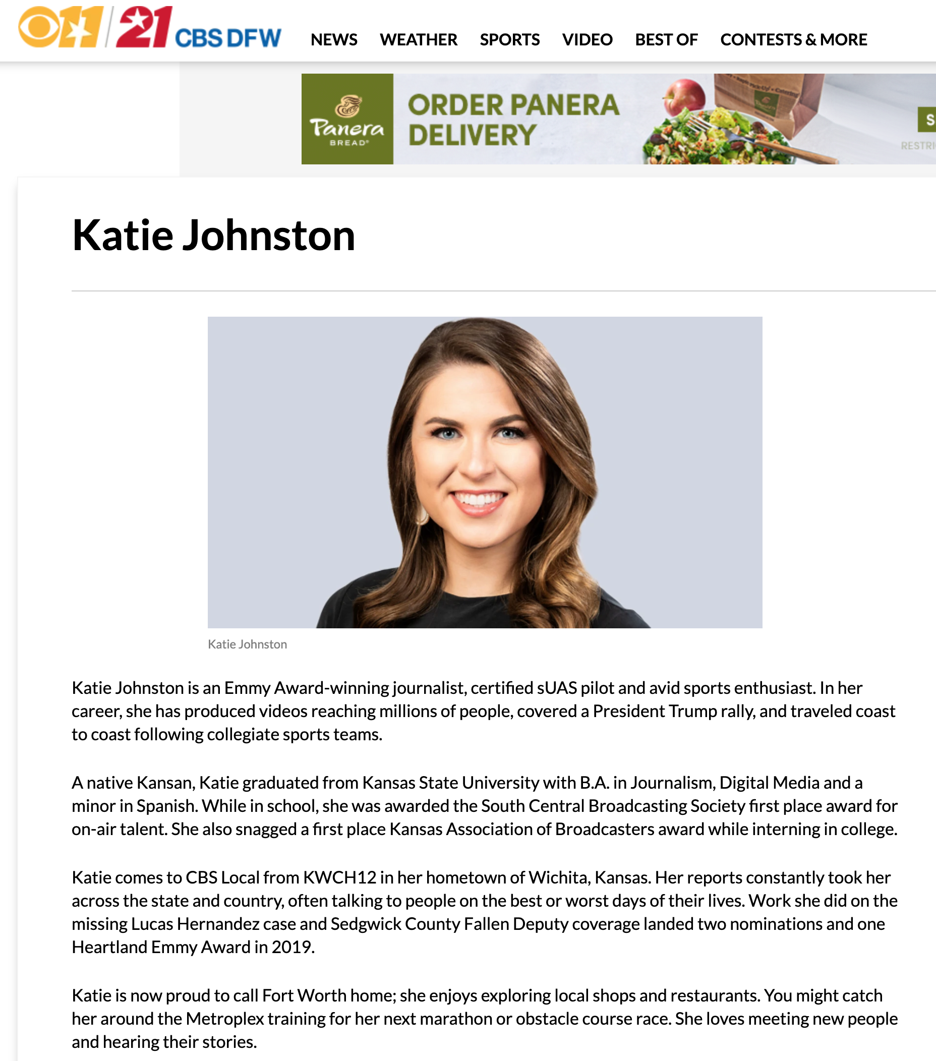 So we head over to the CBS station in Dallas see this bio for Katie Johnston: