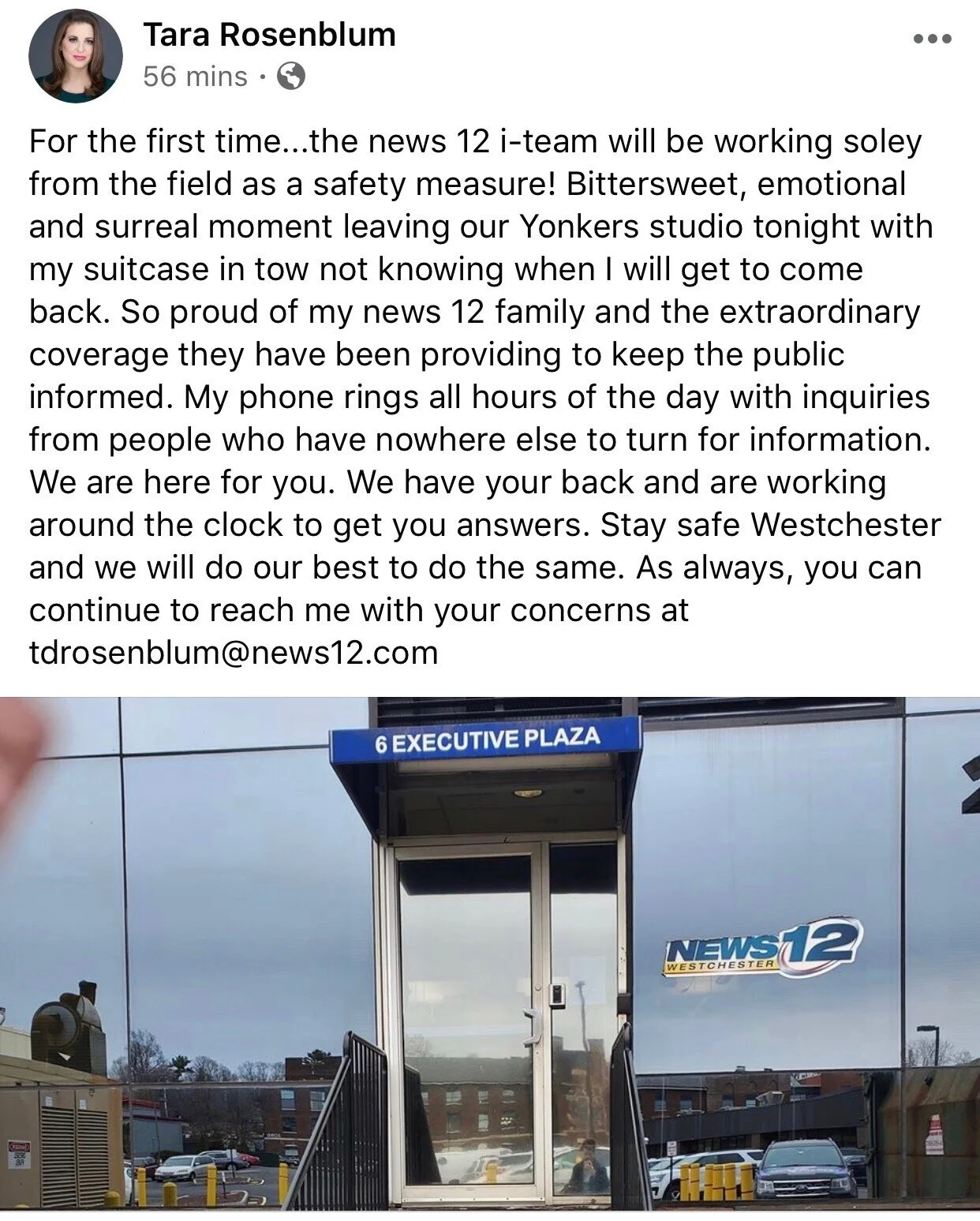 /News 12 is telling their Reporters and Photographers to not come into the station and to work remotely.