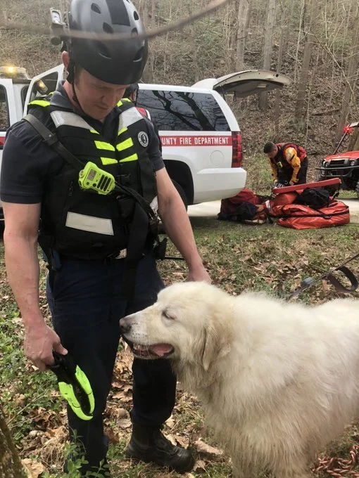 The Baltimore County Fire Department and EMS were called to the scene and were able to rescue both Bending and Balto.