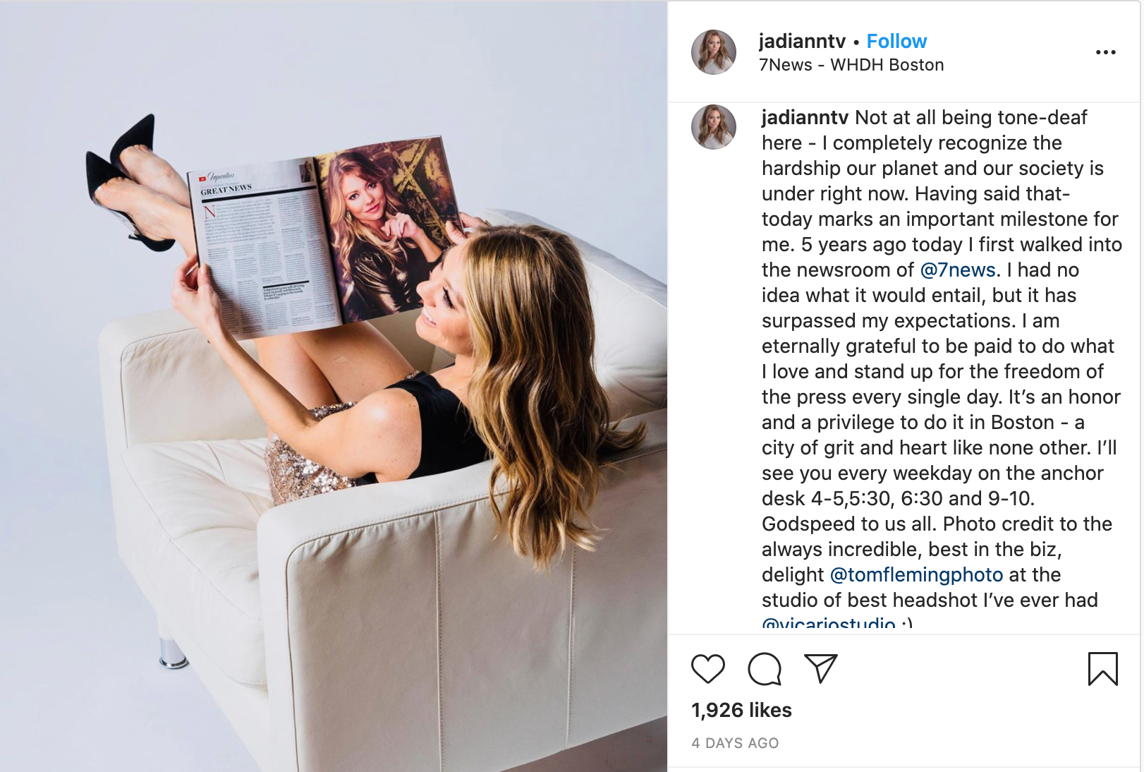 /An FTVLive reader saw this post from WHDH Anchor Jadiann Thompson and felt the need to weigh in.