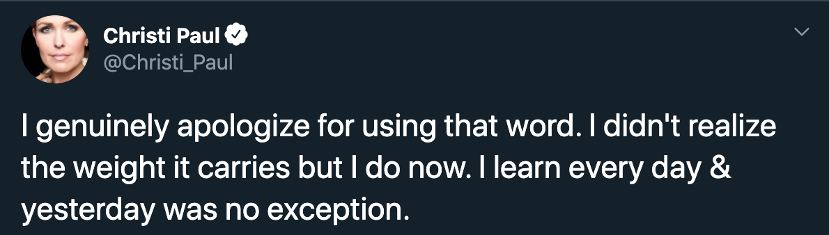 Many of you might have used the same word and not know that it was derogatory towards a group. That is what happened with Paul. But, to her credit, she apologized and learned from it.