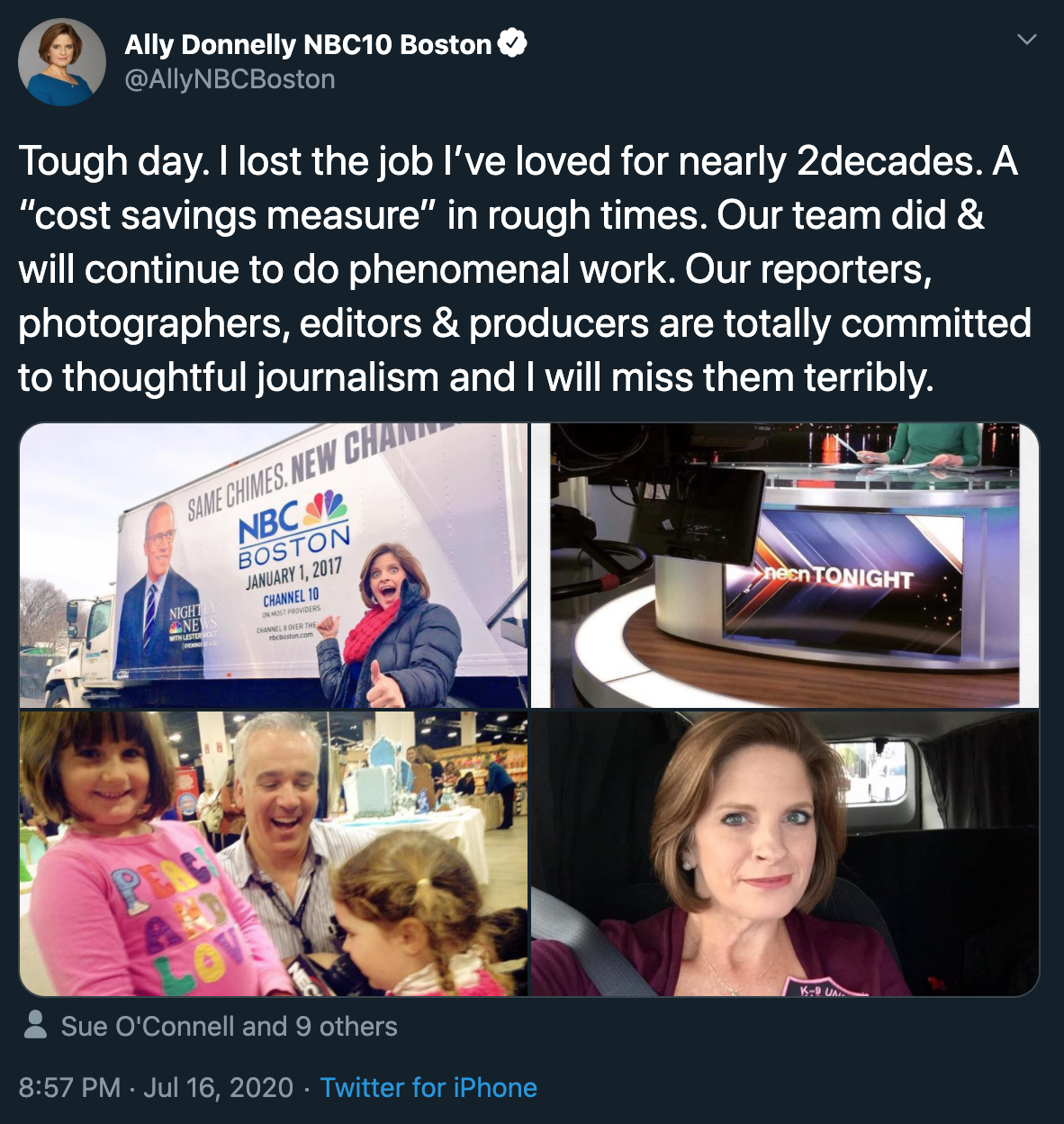 Investigative Reporter Ally Donnelly announced on her social media that she has lost her job in these very difficult times.