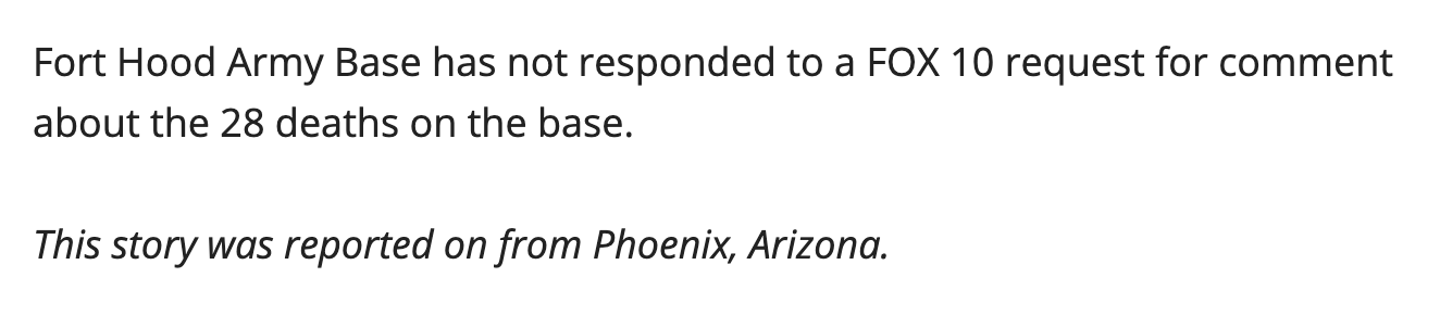 Fort Hood is in Texas and yet this is how the story posted by KRIV (Channel 26) ends: