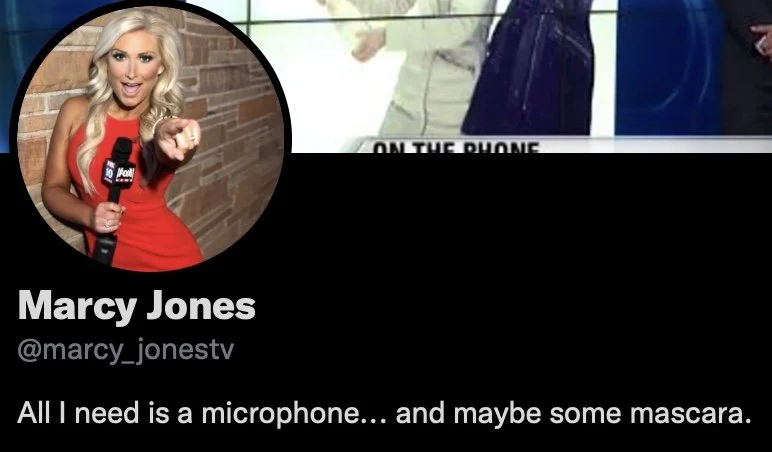 /If you look at the Twitter page of WFSB (Hartford) Reporter Marcy Jones, her bio reads “All I need is a microphone….and maybe some mascara.”