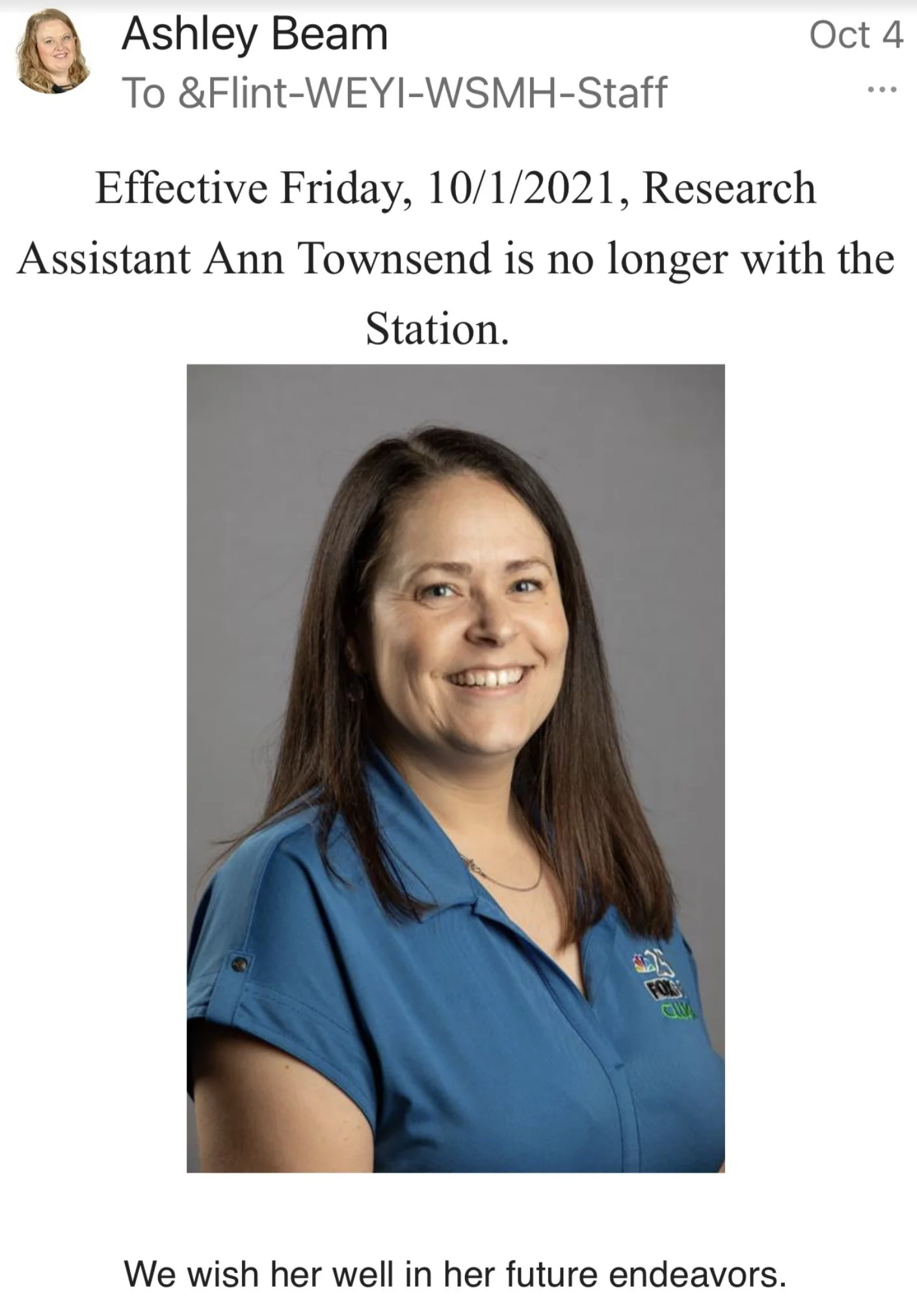/It appears that the revolving door at Sinclair’s WEYI25/FOX66 in Flint, Michigan is spinning so fast, that they have come up with a template for goodbye memos.