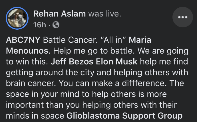 He is now in a fight for his life as he battles brain cancer. He posted a video to Facebook about what he is going through and his wish to help others. Here’s a link to the video.