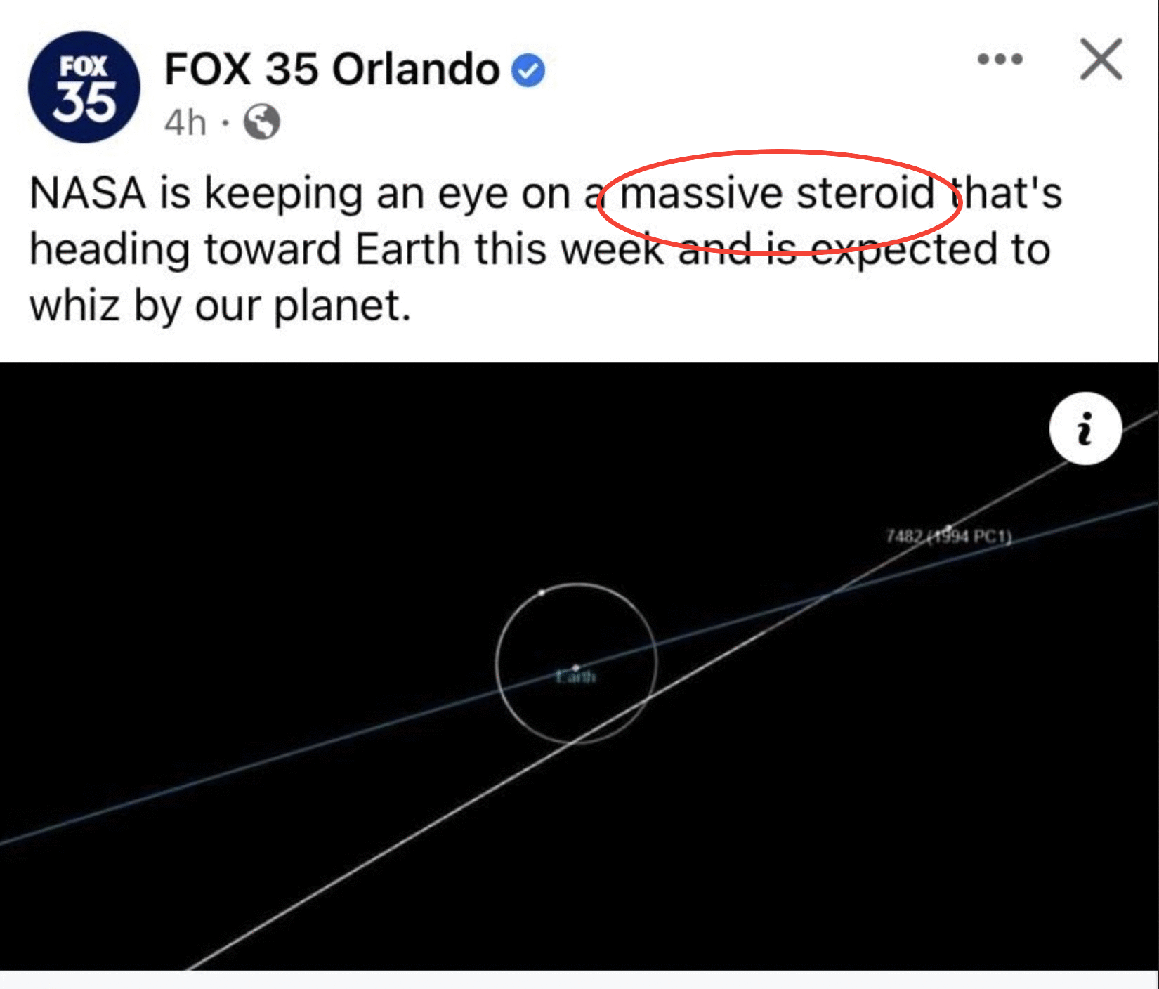 /According to WOFL in Orlando we have a “massive steroid” headed toward Earth.