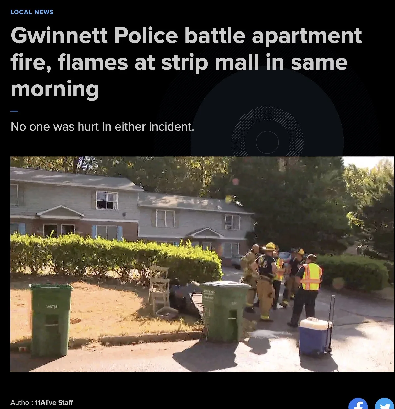/According to Tegna’s WXIA (Atlanta), Gwinnett POLICE battled an apartment fire on Wednesday morning.