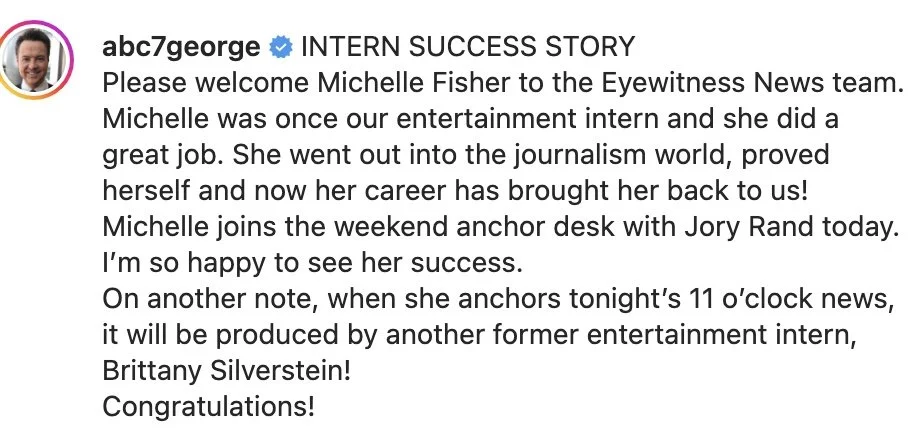 Michelle Fisher was a one time intern at KABC and now she is anchoring the newscast at the ABC O&O.