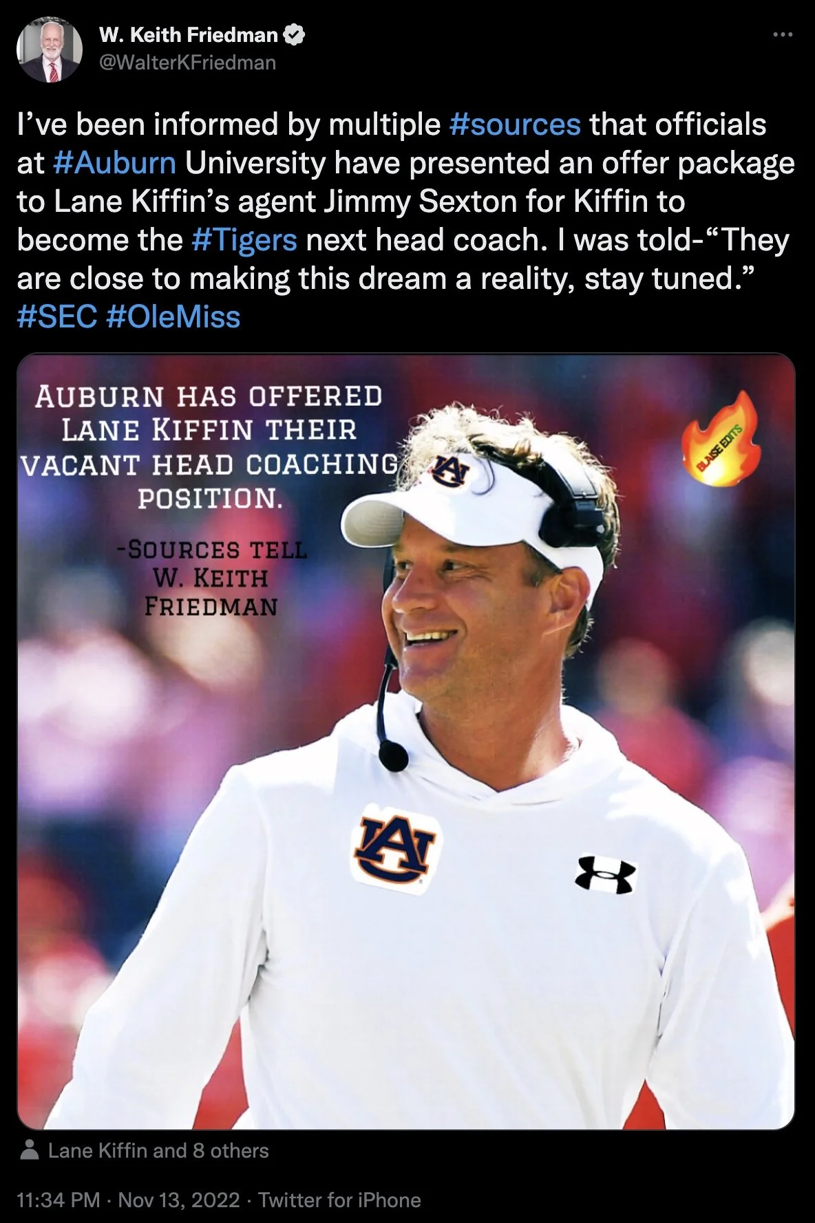 Of course, the thing here is Kiffin has not flat-out said that it isn’t happening. He also has games left to coach this season at Ole Miss.