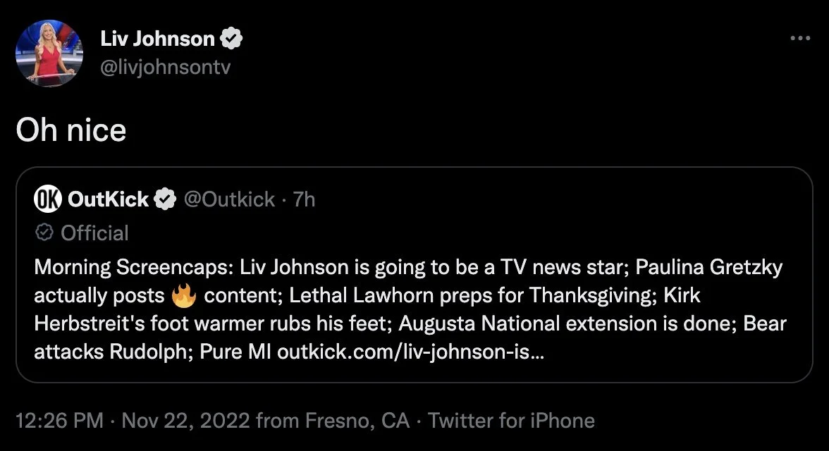 /The website OutKick claims that KSEE (Fresno) Reporter Liv Johnson is going to be the next TV news star.