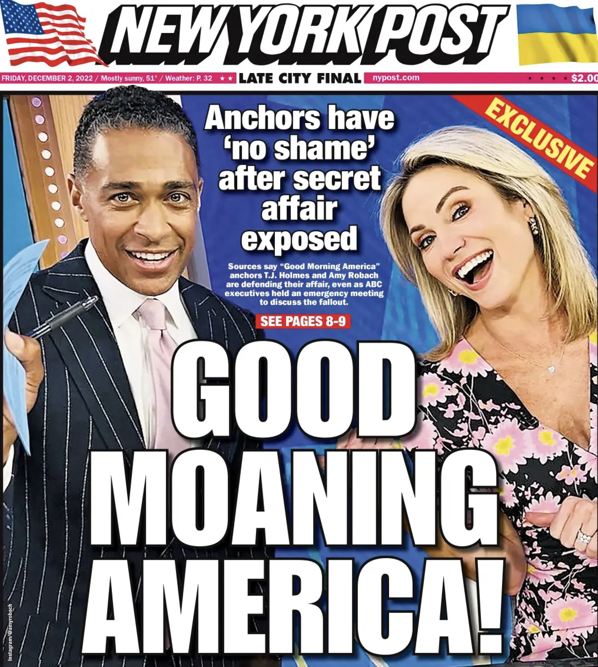 Holmes is said to have had more affairs at ABC than just this one with Robach. That could force the hand of ABC suits to ice Holmes.