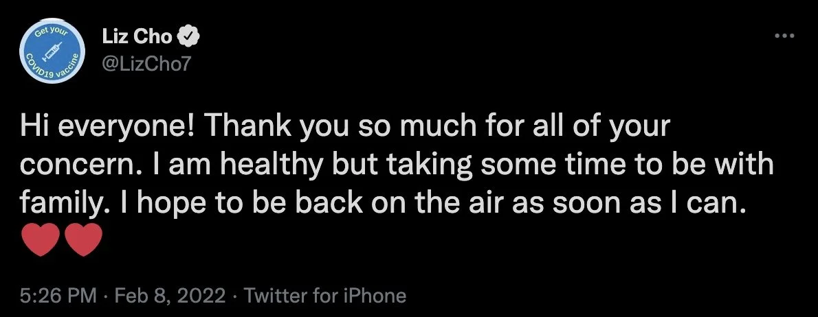 But, WABC Anchor Liz Cho has been missing from the newscasts for quite some time and viewers have been wondering what’s up?