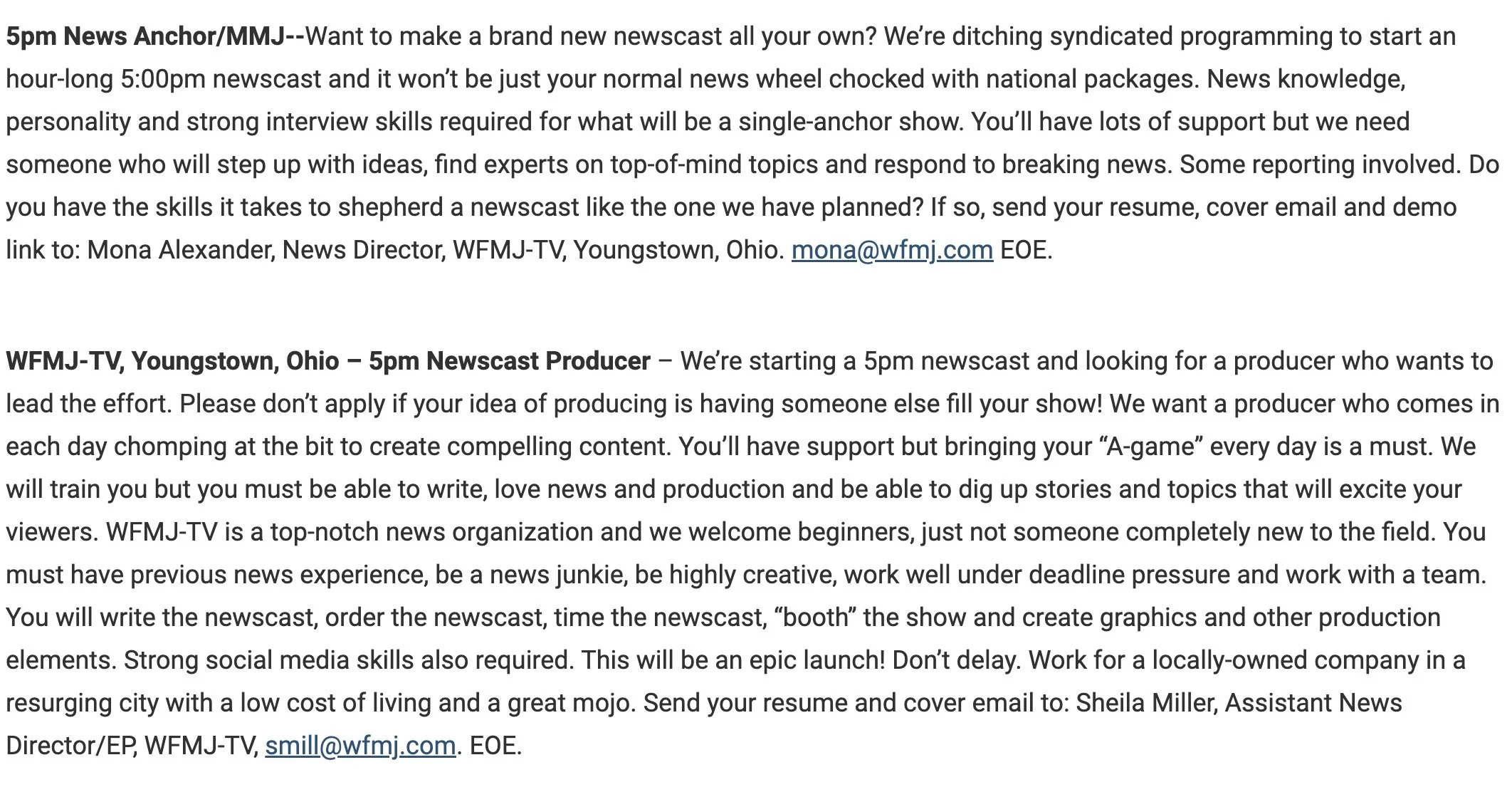 The station has posted an opening for an Anchor job as well as a Producer job that promises that the new newscast “….will be an epic launch!