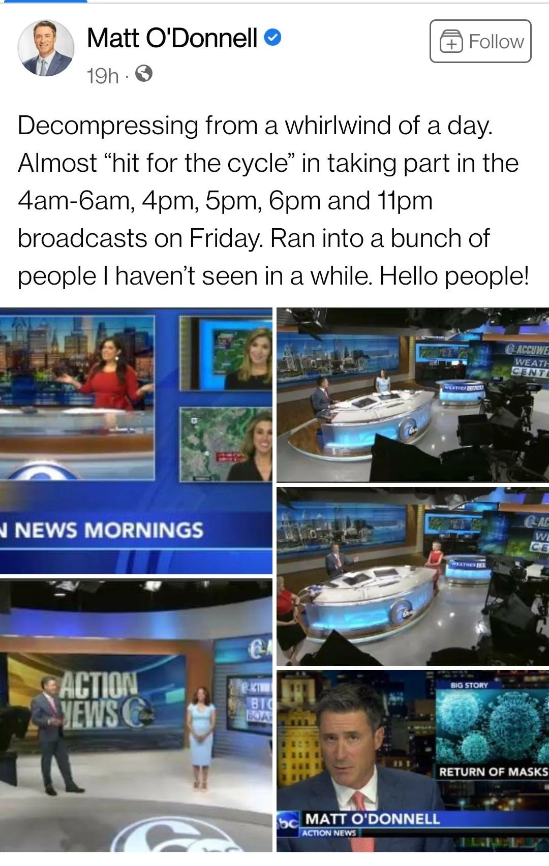 But, it appears that he also was called on to anchor the the 4 PM newscast, which makes for a long day. But, it didn’t stop there. O'Donnell also did the 5PM and 6 PM newscasts and even was on the 11 PM news.