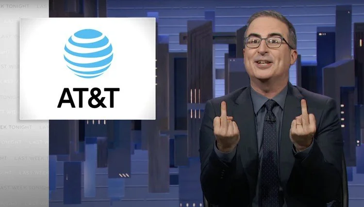 “Interestingly, as of Friday, AT&T officially no longer owns us, so it is goodbye for me, business daddy, and let me just say this,” Oliver said as he held up his two middle fingers, “which is frankly two more bars than you have ever had.”