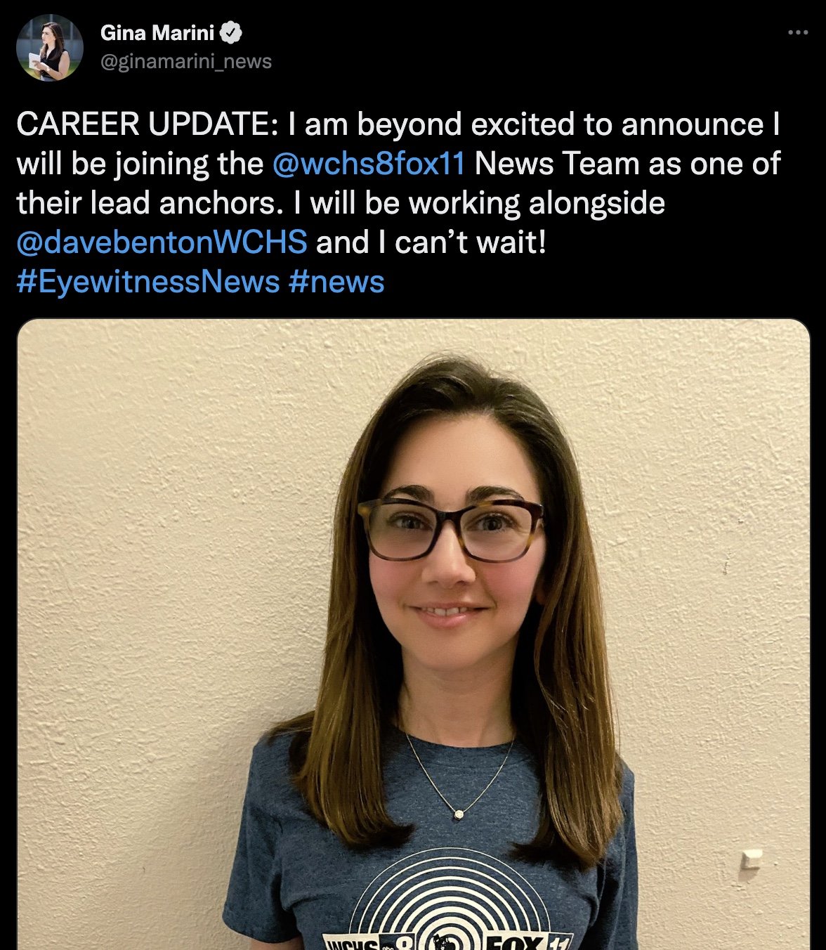 Marini posted the news that she is headed to the main Anchor gig at WCHS in Charleston.